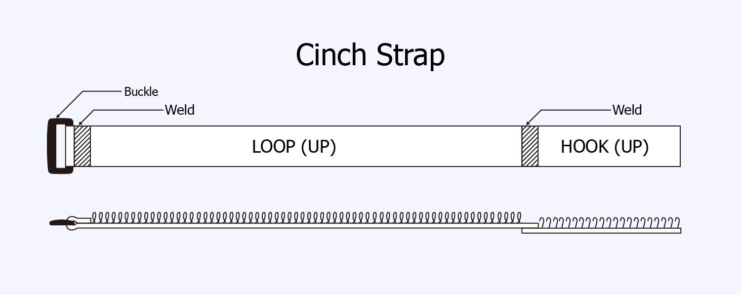 加扣固定帶由黏扣帶之勾面、毛面以及扣環所組成,環繞欲固定處後,將勾面穿過扣環並反折貼合毛面即完成,能夠重複使用且可以輕鬆調整綑綁鬆緊度。